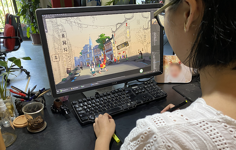 我們將故事中蘩樓在民國時期西關(guān)大街的場景、西關(guān)人提籠遛鳥的生活片段、在茶樓享受一盅兩件的飲茶習(xí)俗以手繪畫出來,還原品牌歷史。這是