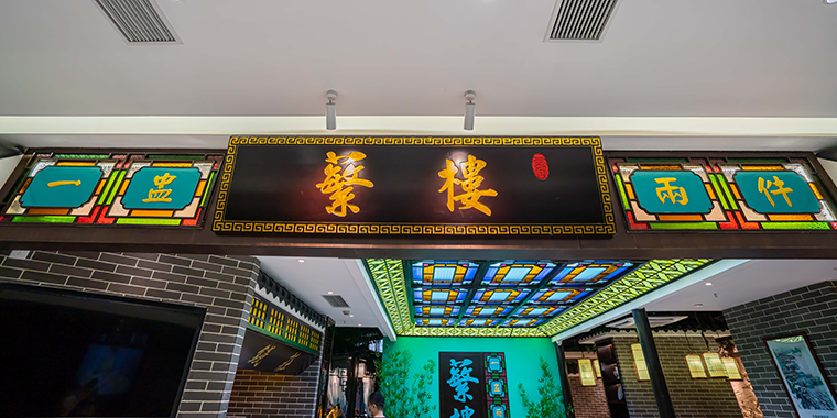 空間中我們則用西關(guān)常見的騎樓、灰磚、鑊耳山墻、趟門,把百年傳承的文化韻味裝飾出來,讓消費者身臨其境,感受蘩樓的西關(guān)點心文化。這是把