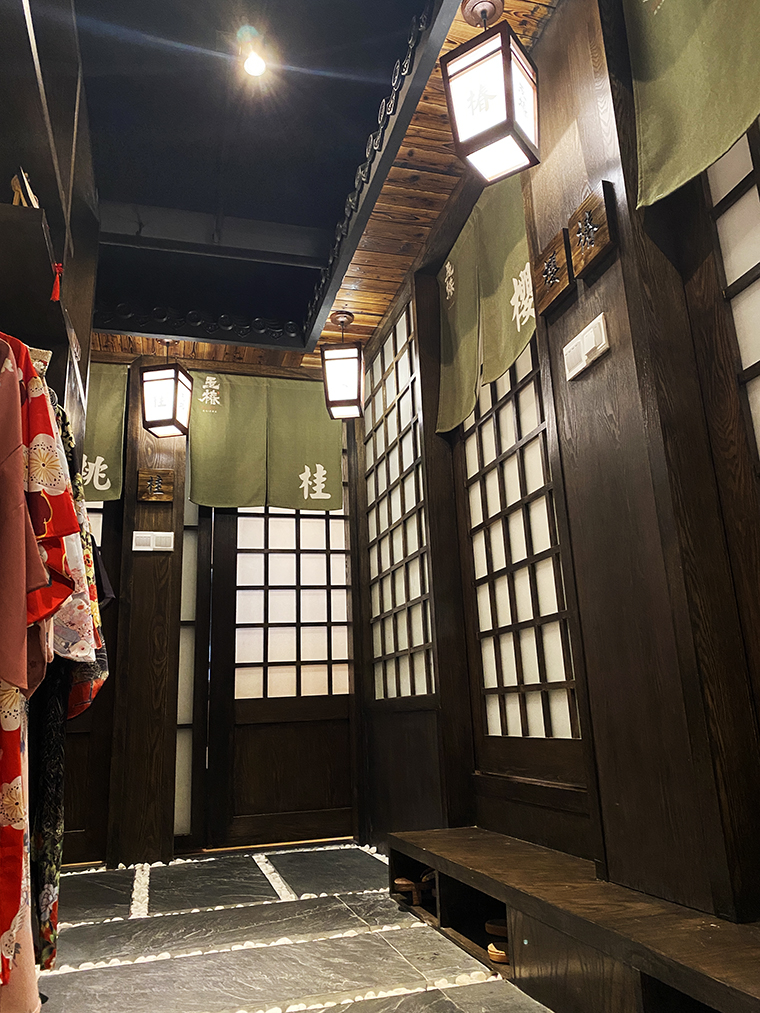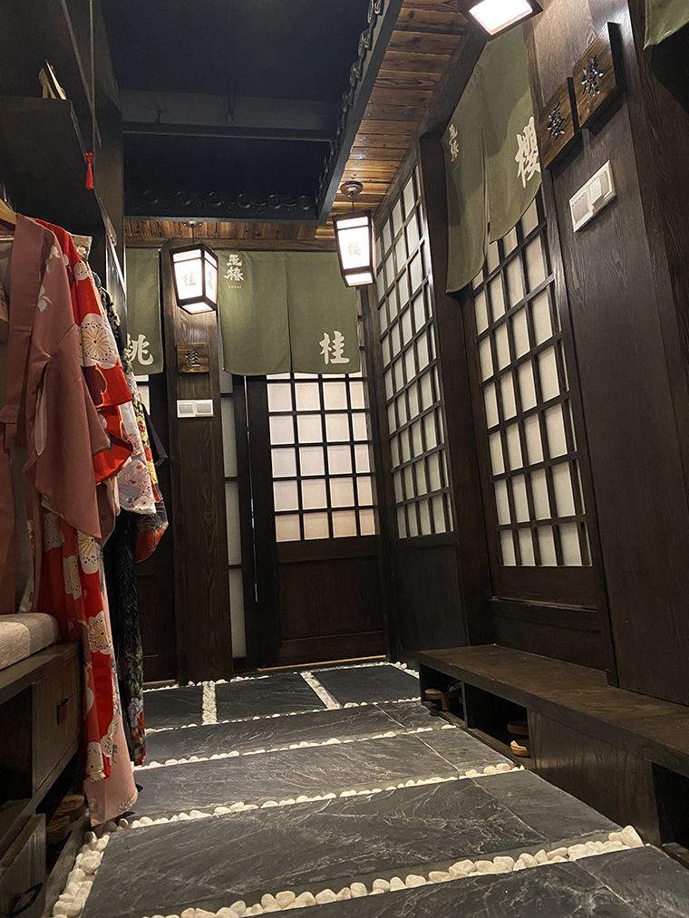 二樓除了必備的洗手間、儲物柜外,還設置了和服展示區(qū),這是餐飲娛樂化的一大重要趨勢。