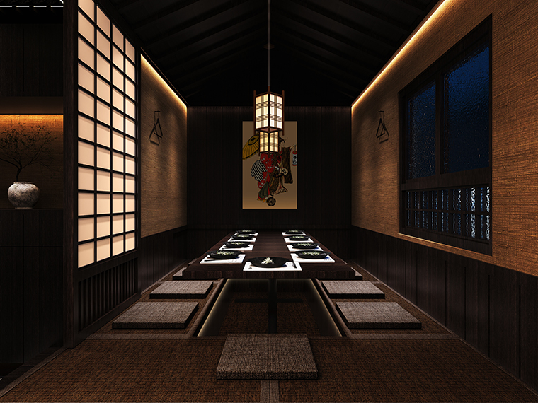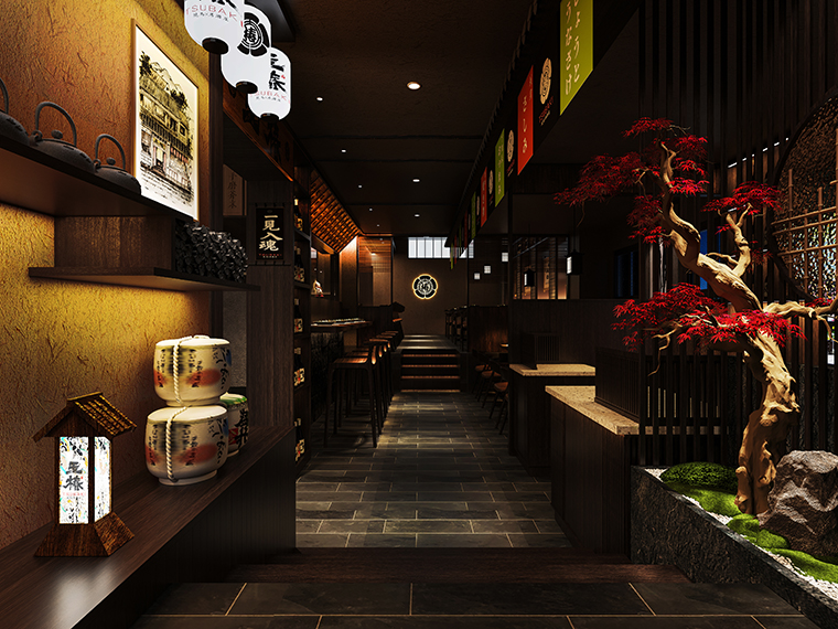 京都味道、匠傳玉椿”來展開步移景異,一步一景的空間效果圖設計。