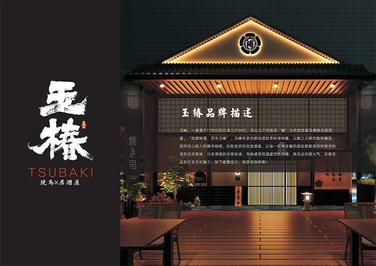 京都味道,匠傳玉椿”,我們精心設計的品牌徽章,既表明品牌純正日本燒鳥居酒屋的血統(tǒng)屬性,也昭示我們用心經(jīng)營,代代傳承的理念與決心。