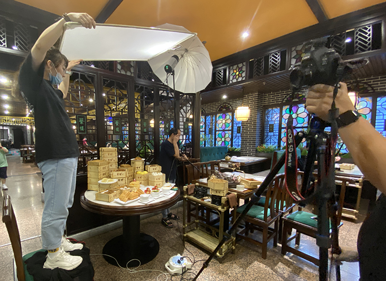 為達(dá)到理想拍攝效果,品深設(shè)計(jì)師再次來(lái)到蘩樓與廚師交流,了解這十款產(chǎn)品的特色,用料,制作工藝等細(xì)節(jié),同時(shí)也購(gòu)買有關(guān)廣式點(diǎn)心制作相關(guān)書(shū)籍進(jìn)行對(duì)比學(xué)習(xí),獲得很多新發(fā)現(xiàn),如:判斷手工炸油條好壞,必須要展示其“
