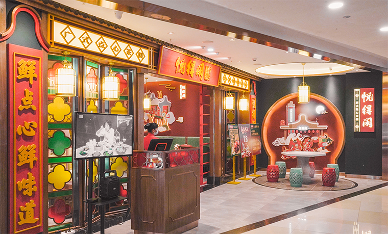 品深服務的悅得閑茶樓:咨客小哥穿民國長衫、咨客小姐姐是民國旗袍,打扮成老廣州的東山少爺、西關小姐姐的形象,非常吸眼球;咨客臺也是專門設計的西關古建筑造型,符合品牌調性,和門店的整個裝飾風格一致;顧客等候區,設置成嶺南建筑園林風格,讓路過的顧客對進店充滿期待。客家菜代表客語,門店的咨客接待區和顧客等候區就專門設置了符合品牌特色的咨客臺,茶水桌,等候用餐的餐椅,與整個門店完美匹配,令顧客感動。