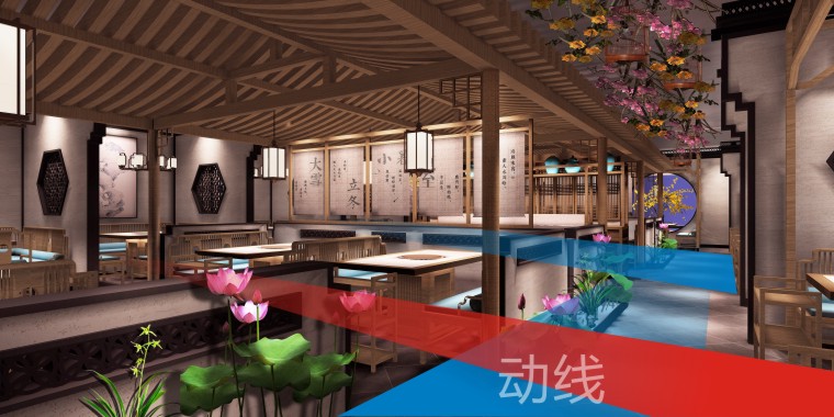 動(dòng)線:是建筑與室內(nèi)設(shè)計(jì)的用語(yǔ)之一,把人在室內(nèi)外移動(dòng)的點(diǎn)連起來(lái),就稱之為動(dòng)線。餐廳動(dòng)線是指顧客、服務(wù)員、食品與器皿在餐廳內(nèi)流動(dòng)的方向和路線。如:后廚動(dòng)線,必須以高效、安全為原則,既要考慮各個(gè)功能點(diǎn)設(shè)置是否合理,同時(shí)也要讓廚師操作最短,避免交叉,目的是更快捷出餐,方便顧客用餐,提升翻臺(tái)率。好的餐廳動(dòng)線設(shè)計(jì)可以增加員工工作效率,提升上菜速度,給顧客良好的用餐體驗(yàn)。