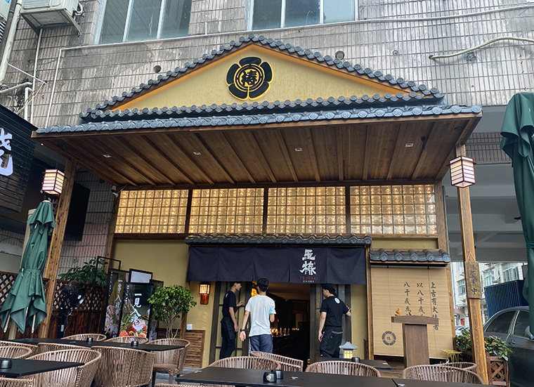 玉椿 燒鳥居酒屋,整體的品牌空間視覺呈現出江戶時代建筑風格,目的就是塑造出這是一家日料很地道,味道很純正,環境很舒服,消費很實惠的日本料理老牌子。