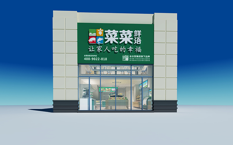 本次品深餐飲設計策劃服務的生鮮連鎖品牌為全案策劃設計服務。空間裝飾裝修設計的目的一是為了通過合理的空間功能規(guī)劃,使空間動線合理流暢,顧客多的時候也井然有序,運營效率高;二是為了傳達菜菜公社品牌高品質(zhì)社區(qū)生鮮產(chǎn)品的定位,讓顧客有一種直觀的認知。