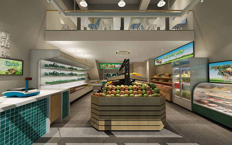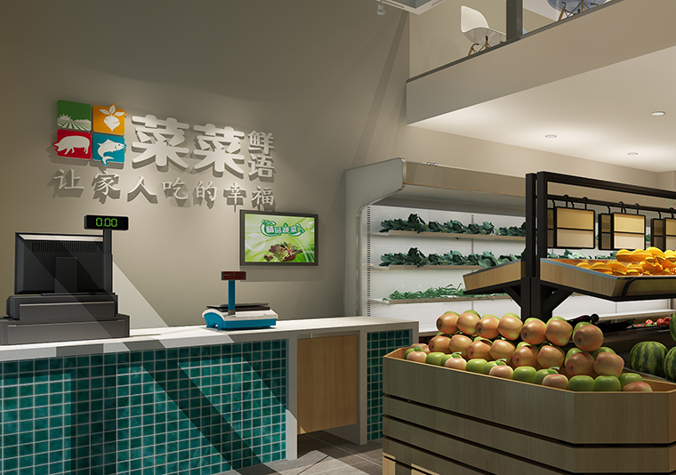 社區(qū)生鮮連鎖店裝飾裝修設計、生鮮連鎖店形象設計、生鮮連鎖店軟裝燈光設計。