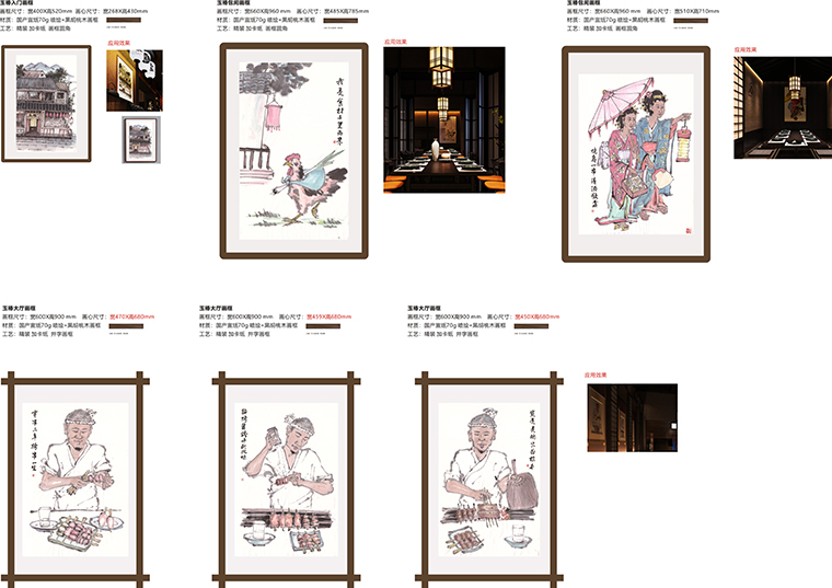 玉椿要傳達京都味道,地域文化就是美食地道的證明。我們從門頭開始到天花吊頂、地面鋪設、墻面涂料、燈光、家具等各方面圍繞“京都味道、匠傳玉椿”來展開步移景異,一步一景的空間效果圖設計。